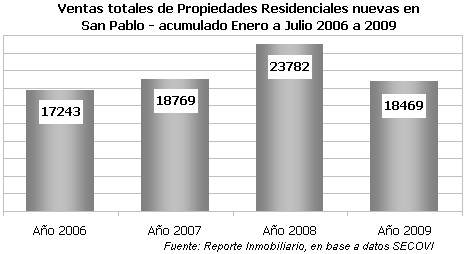 Por otro lado la demanda en la ciudad de San Pablo mostró un impulso que hizo que las cifras se ubiquen en cantidades de compra-ventas similares a las de 2007, habiendo sido el 2008 muy bueno (a pesar de la crisis internacional), a diferencia de lo que ocurrió en el resto de los mercados de Latinoamérica: